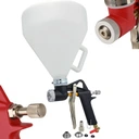 Dzięki dużemu zbiornikowi 5L, regulacji przepływu powietrza oraz aluminiowej konstrukcji, pistolet zapewnia precyzyjne i komfortowe aplikowanie różnych materiałów budowlanych.