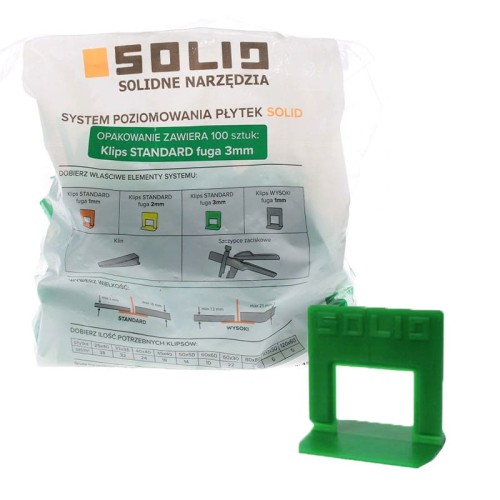 SOLID System poziomowania płytek- 100 klips 3mm STANDARD