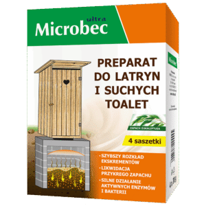 proszek z mieszanką bakterii i enzymów przyspieszających rozkład organicznych odpadów w latrynach i suchych toaletach eliminuje nieprzyjemny zapach redukuje zawartość twardych ekskrementów